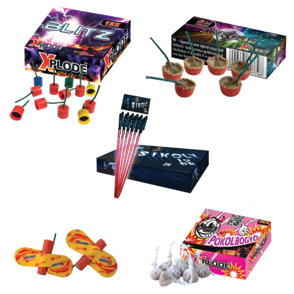 12 db rakétát tartalmazó csomag (3db x 42 mm,+ 5db x 37 mm+ 4db x 25 mm)