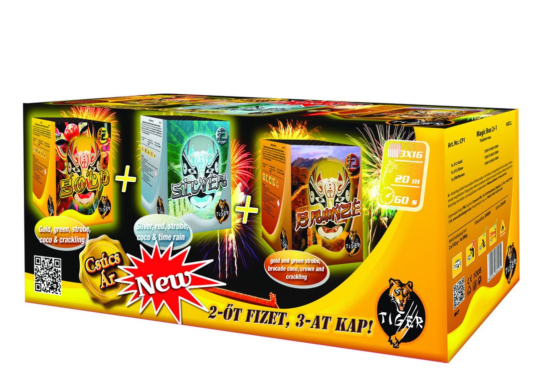 3 db 16 lövéses tűzijátékot tartalmazó csomag.